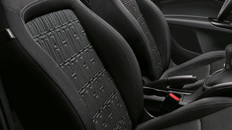 • Recycled black fabric seats with FIAT monogram